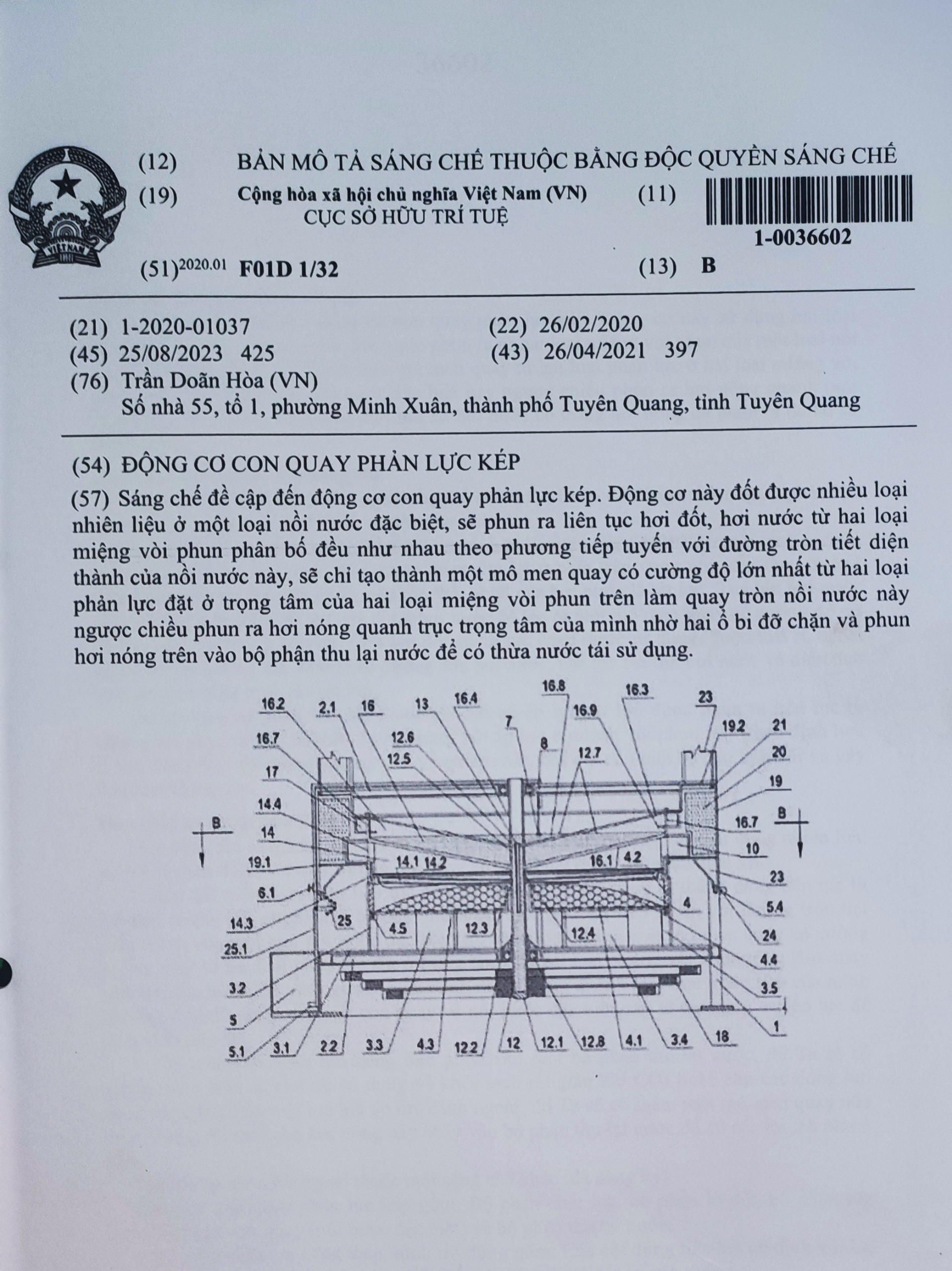 BẰNG ĐỘC QUYỀN SÁNG CHẾ SỐ 36602